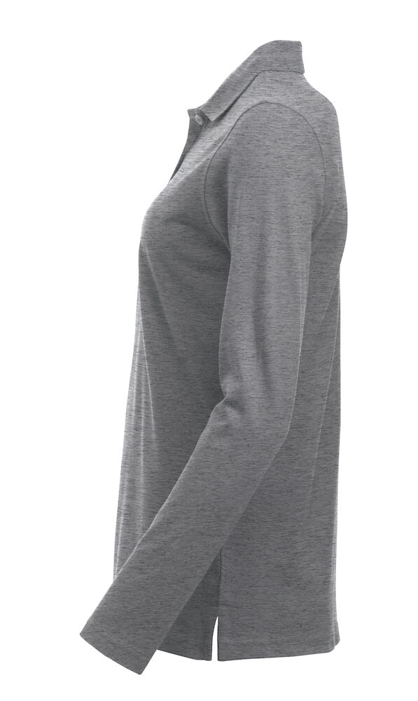 Polo piquet manica lunga. Tessuto pettinato stabilizzato. Tre bottoni tono su tono. Nastrino parasudore. Versione uomo con polsini elasticizzati, donna senza polsini. Cuciture ribattute. Spacchetti laterali. Vestibilità slim-fit.